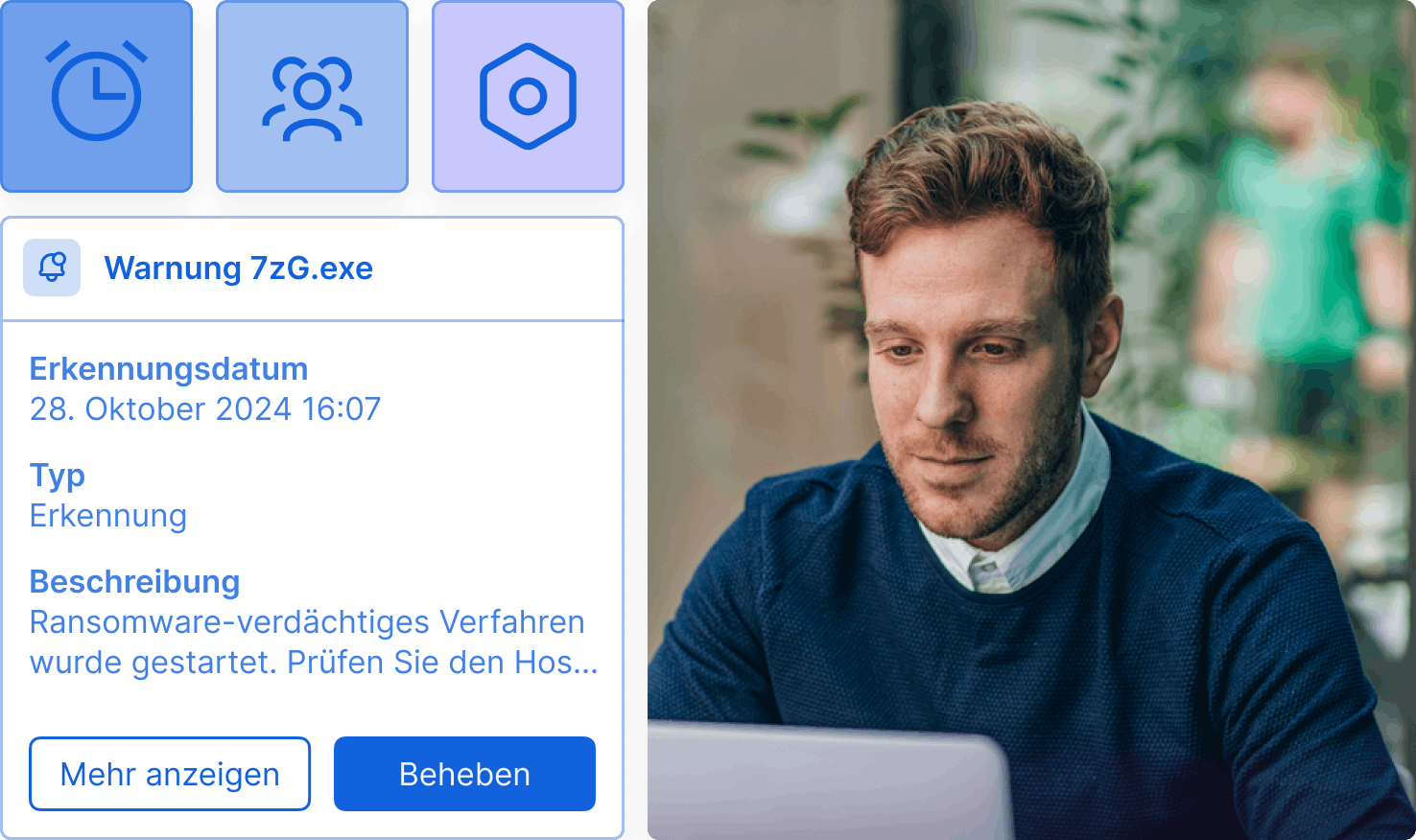 auf Ihren Endgeräten und Servern installiert, um verdächtige Aktivitäten zu erkennen.